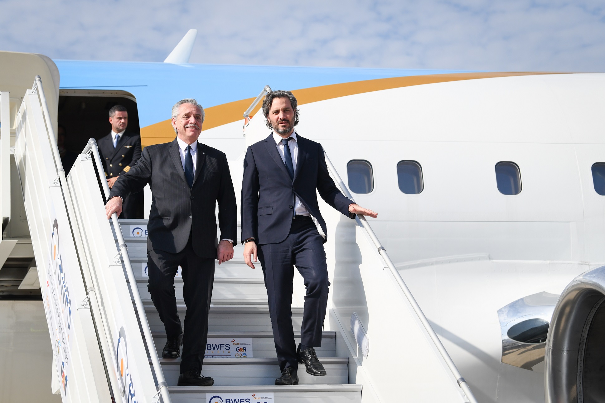 La comitiva oficial está integrada por el ministro de Relaciones Exteriores, Comercio Internacional y Culto, Santiago Cafiero; el secretario General de la Presidencia, Julio Vitobello; la portavoz de la Presidencia, Gabriela Cerruti, y el embajador de la Argentina en los Estados Unidos y Sherpa del G20, Jorge Argüello.