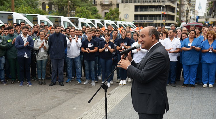 El gobernador Juan Manzur encabezó este martes, con el objetivo de optimizar la atención sanitaria en la provincia, en la explanada de Casa de Gobierno, la ceremonia de entrega de 18 ambulancias 0km, un trailer cardiológico y la puesta en marcha del programa La Salud en Tu Casa