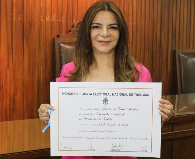 En La 97.1 Radio Tucumán, Medina indicó que "el 7 de diciembre asumo en el Congreso de la Nación representando a los tucumanos, la verdad es que es una alegría para mi, un honor como mujer de la política y del interior de la provincia y del país, poder tener tan importante cargo, también con la responsabilidad en estos tiempos de transformaciones, de cambios, con un presidente electo elegido por los argentinos y también voy a defender a cuidad a mi provincia a los tucumanos y a la gobernabilidad de mi provincia".