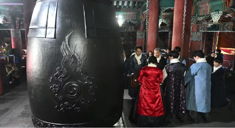 En Japón, las campanas de los templos sonaron en todo el país mientras la gente se reunía en santuarios y templos para dar la bienvenida al nuevo año. En el Templo Tsukiji de Tokio, los visitantes recibieron leche caliente y sopa de maíz gratis mientras hacían cola para tocar una gran campana, y se celebró un concierto de órgano de tubos ante un majestuoso altar.