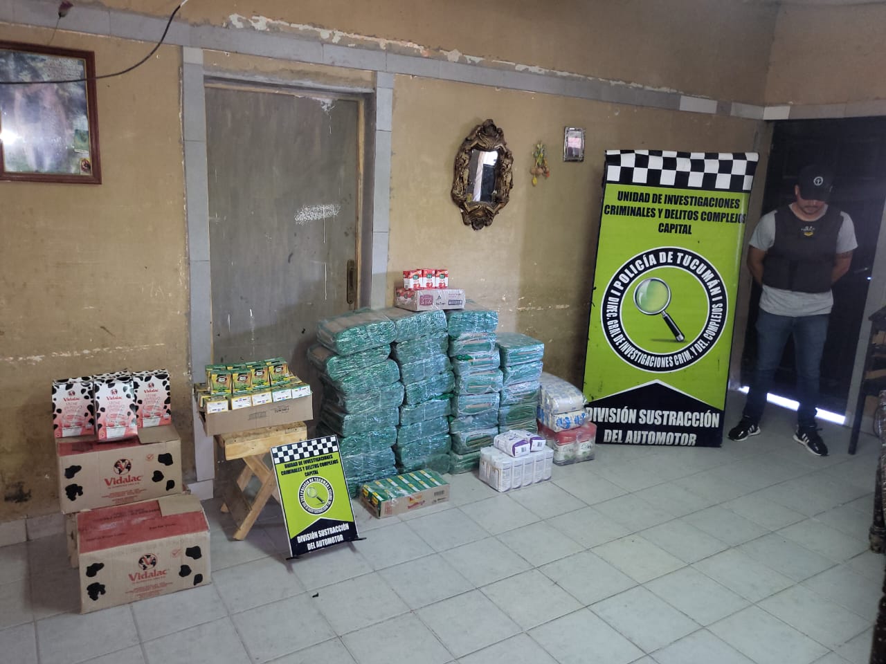 “De los allanamientos, ordenados por la jueza de feria María Soledad Hernández, se pudo recuperar cajas de arvejas, tomate, choclo, leche en polvo, fardos de yerba mate, cajas con 15 unidades de aceite, paquetes de azúcar, entre otros productos no perecederos que pertenecían a la cartera Social”, finalizó Agüero Gamboa.