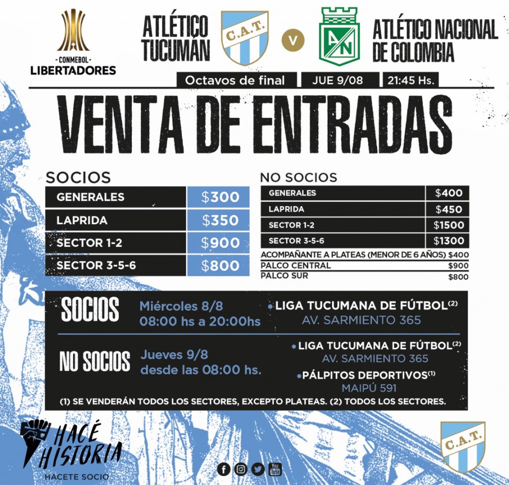 Ese día habrá venta exclusiva para socios, en la Liga Tucumana de Fútbol (avenida Sarmiento 365). Los tickets podrán adquirirse de 9 a 20 horas.
