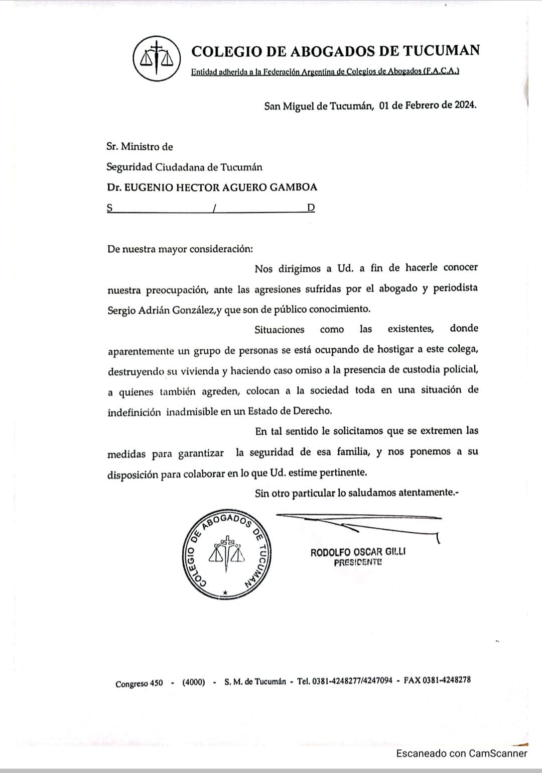 Retornando el tema de los ataques constantes a González y su familia el abogado aseveró que no piden "un trato  exclusivo o un trato con privilegios a  Sergio González, sino que pedimos que como ciudadano común, normal, que habita la provincia  de Tucumán, tenga la seguridad y tenga la tranquilidad de vivir en paz. Y esta situación,  viene de vieja data,  no es que hoy o ayer entrara. Acá ya se violó lo más íntimo que tiene el ser humano, que es su propiedad. La propiedad  privada, amparada constitucionalmente, es absolutamente inviolable".