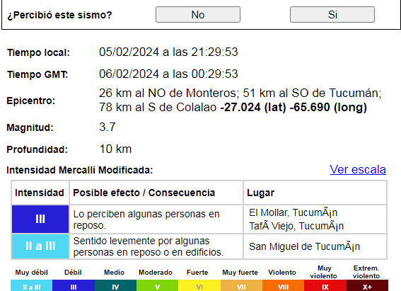 Fue de 3.9 grados de magnitud en la escala de Richter. Se percibió con intensidad en Monteros, Concepción, Simoca y Graneros.