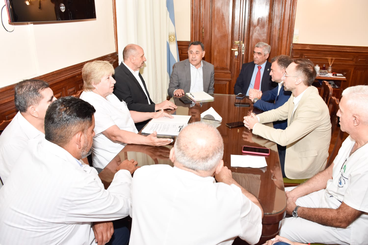 Finalmente, los representantes del Poder Ejecutivo recibieron al Sindicato de Trabajadores Autoconvocados de la Salud (Sitas). En ese sentido, los secretarios generales, Julián Nassif y Adriana Bueno informaron que solicitaron la actualización del salario, “con la mecánica de que el mismo sea en blanco a la base de cálculo, lo cual indica mejorar el sueldo básico”.