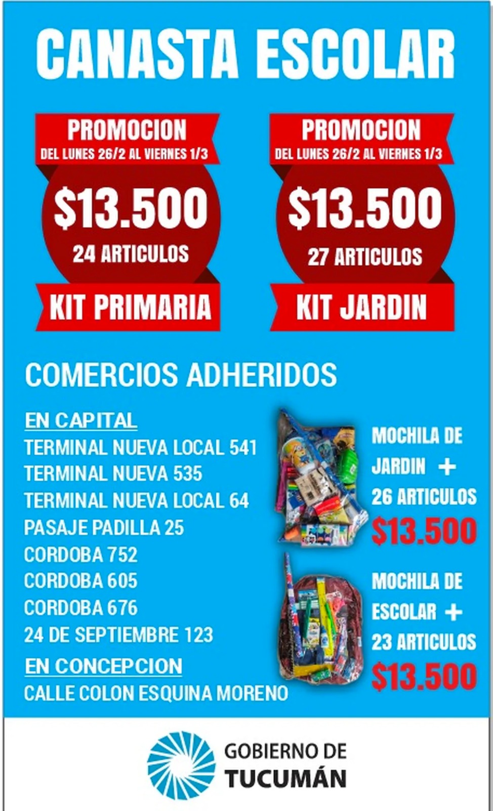 En tiempos de una economía dura para los tucumanos, el ahorro es más que bienvenido, pensando precisamente en esto desde el ministerio de Gobierno y Justicia, conducido por Regino Amado, a través de la subsecretaría de Comercio Interior, elaboraron una Canasta Escolar que tiene un costo de $13.500.