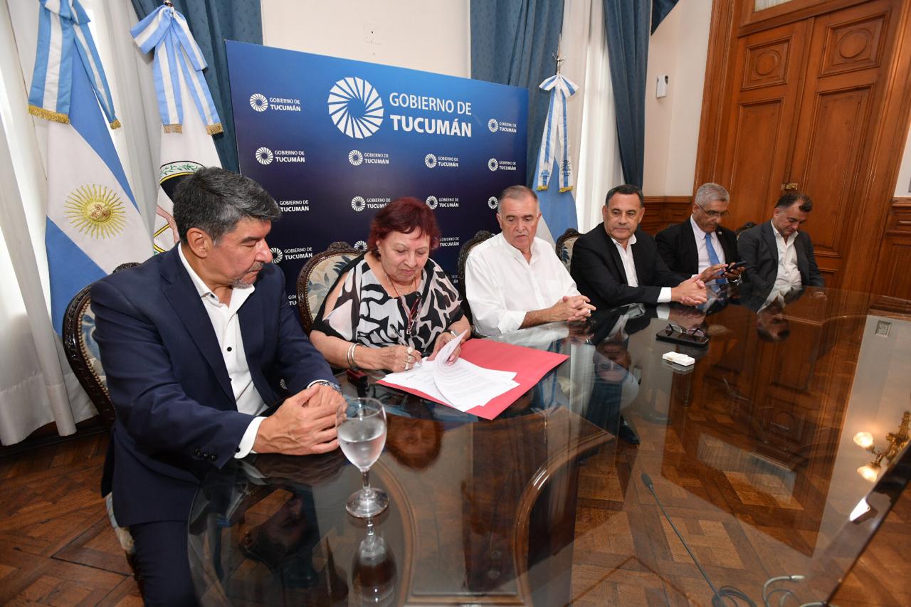 El gobernador Osvaldo Jaldo encabezó, este jueves, el acuerdo paritario con los gremios estatales de la Provincia. Se trata de un aumento de $170 mil más 12% al sueldo básico. De este modo, ningún empleado cobrará menos de $ 402.000. En abril habrá un nuevo encuentro entre las partes. El incremento saldrá por planilla adicional una vez que termine de pagarse el 80% del mes de febrero.