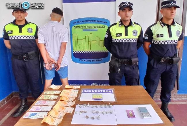 De lo acontecido en el momento, tomó intervención la Dirección de Drogas Peligrosas realizando el pesaje de los envoltorios con la sustancia vegetal secuestrada, mientras que el joven fue trasladado a la base de la Dirección Distritos Urbanos, para las actuaciones judiciales correspondientes.