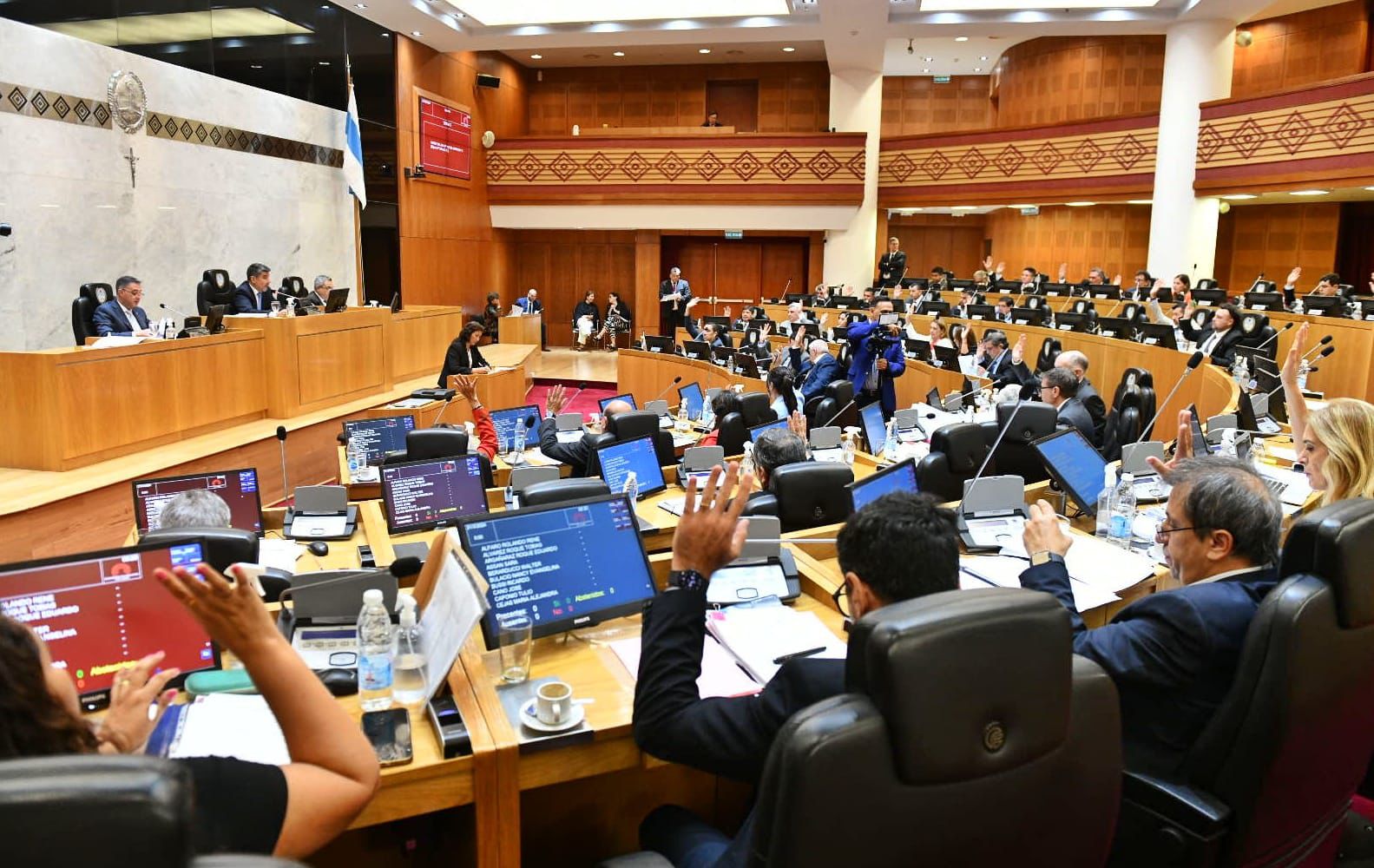 Durante la jornada de hoy se llevó a cabo la Sesión Ordinaria de la Legislatura, el acto fue encabezado por las autoridades que presiden el Parlamento, el vicegobernador Miguel Acevedo; el secretario de la Cámara, Claudio Pérez; y el prosecretario, Alejandro Martínez.
