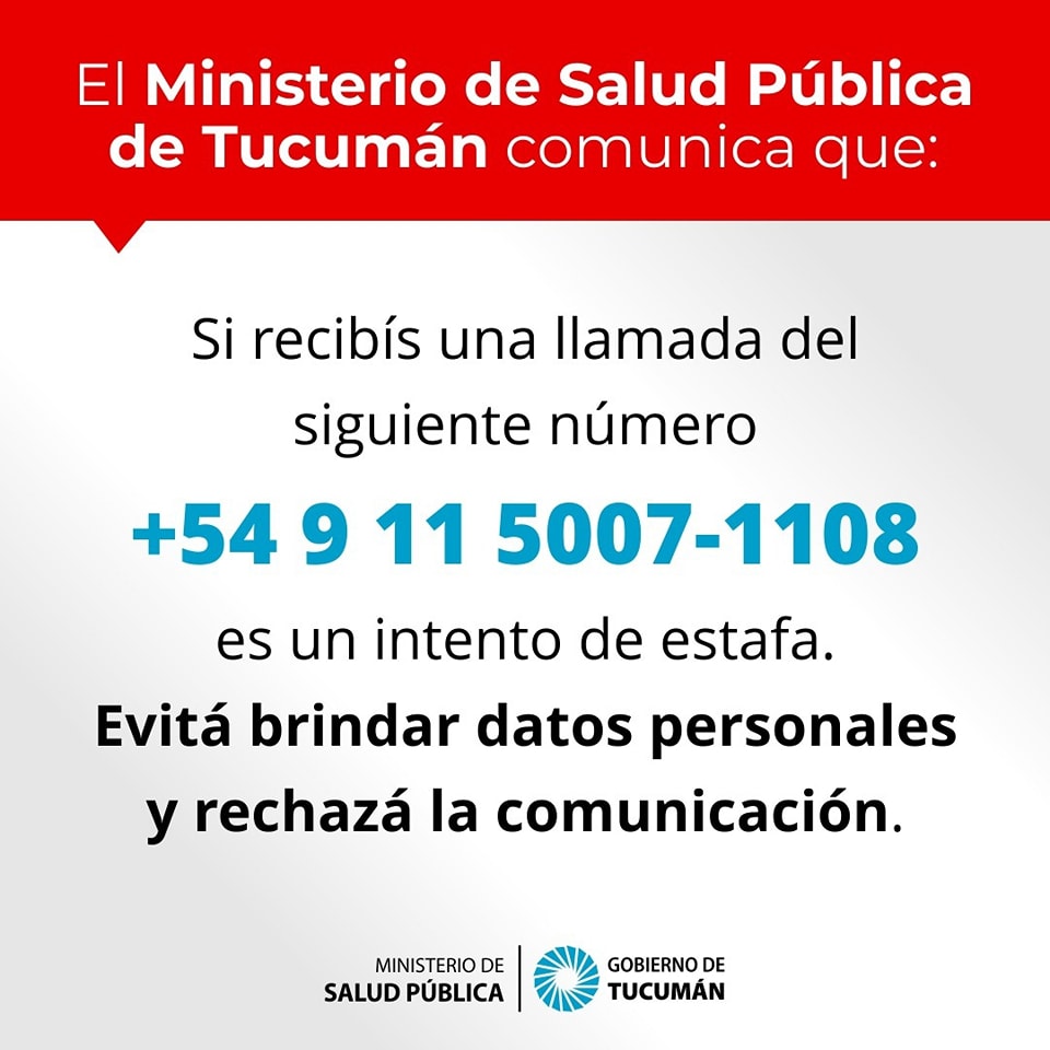 La cartera de Salud, emitió una alerta por llamadas falsas. Sugerencias