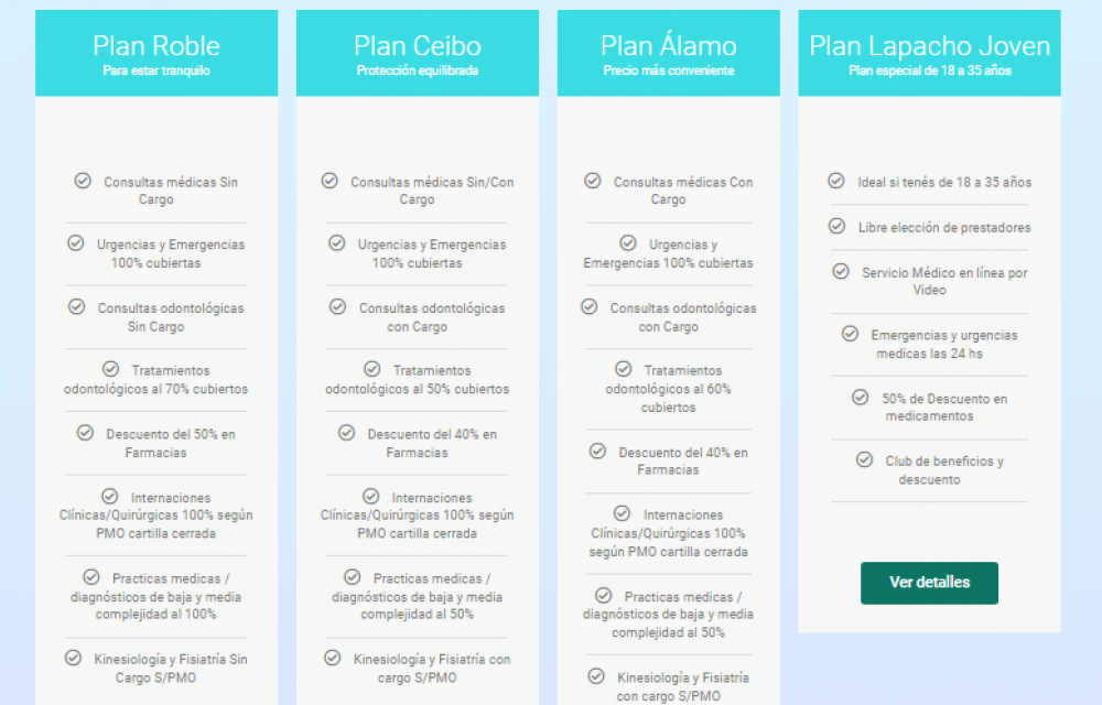 Entre los beneficios que ofrece MEPLIFE, hay "50% en la farmacia, 100% en internación y todo lo que es material descartable, es muchísimo porque internarse hoy es carísimo", dijo y continuó: "Operarse, internarse, alta complejidad, todo lo que sea alta complejidad, 100% en lo que son los planes Roble, Ceibo y Álamo, que son los tres planes tenemos tope de gama, nuestros tres planes fuertes y Lapacho Joven, que es para chicos de 18 a 30 años".