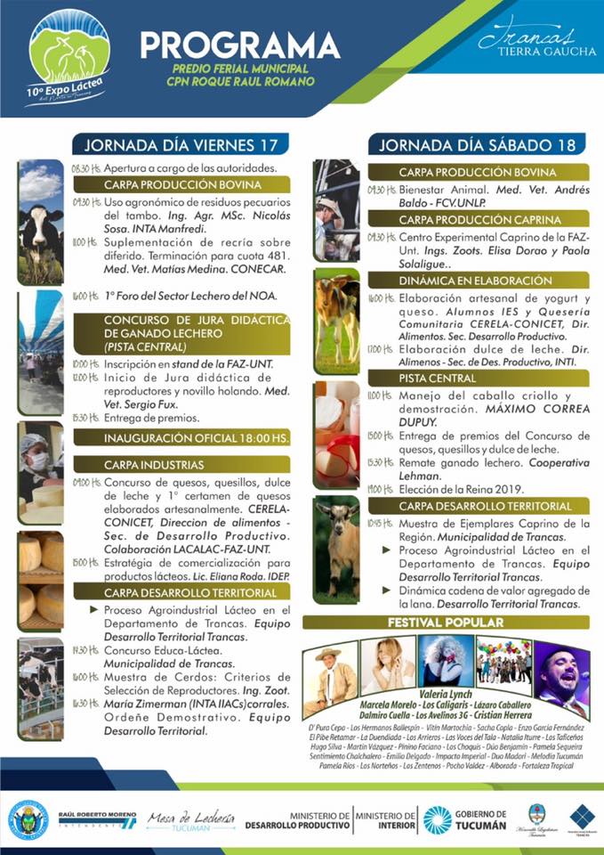La fiesta del sector tambero se llevará a cabo el 17 y el 18 de mayo en Trancas. Animaran Natalia Pachao y Daniel Cata. Mirá todas las actividades que habrá.