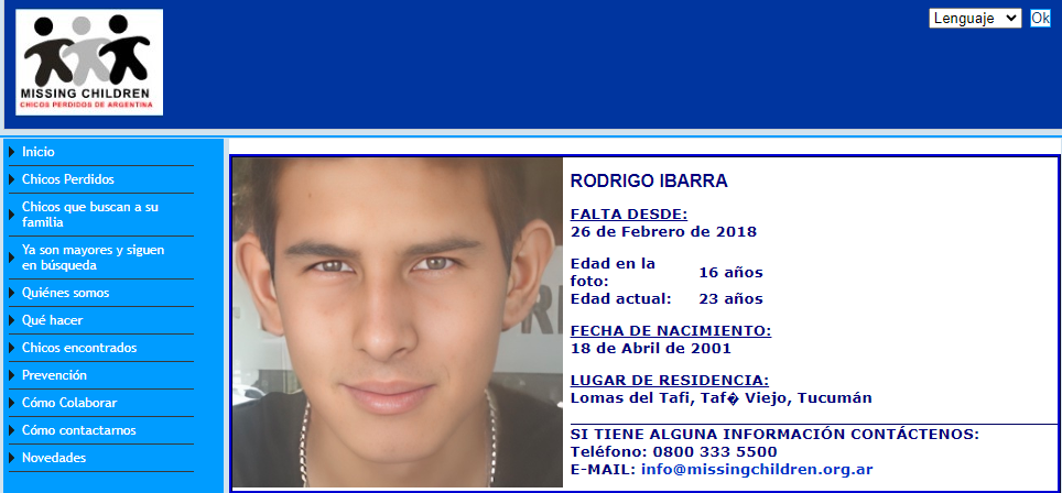 Nuestra provincia, lamentablemente, no está ajena a esta situación, Rodrigo Ibarra es uno de los chicos tucumanos que desapareció a fines de febrero de 2018 y hasta el día de hoy no se conoce su paradero.