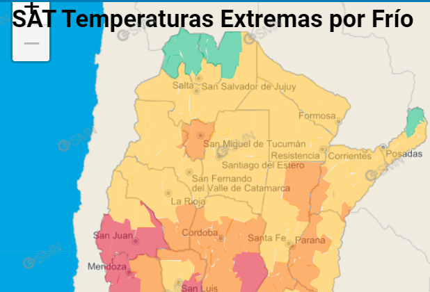 Este martes el Servicio Meteorológico Nacional, en su sitio web, emitió alerta naranja en el SAT, sistema de alerta temprana, por temperaturas extremas: frío.