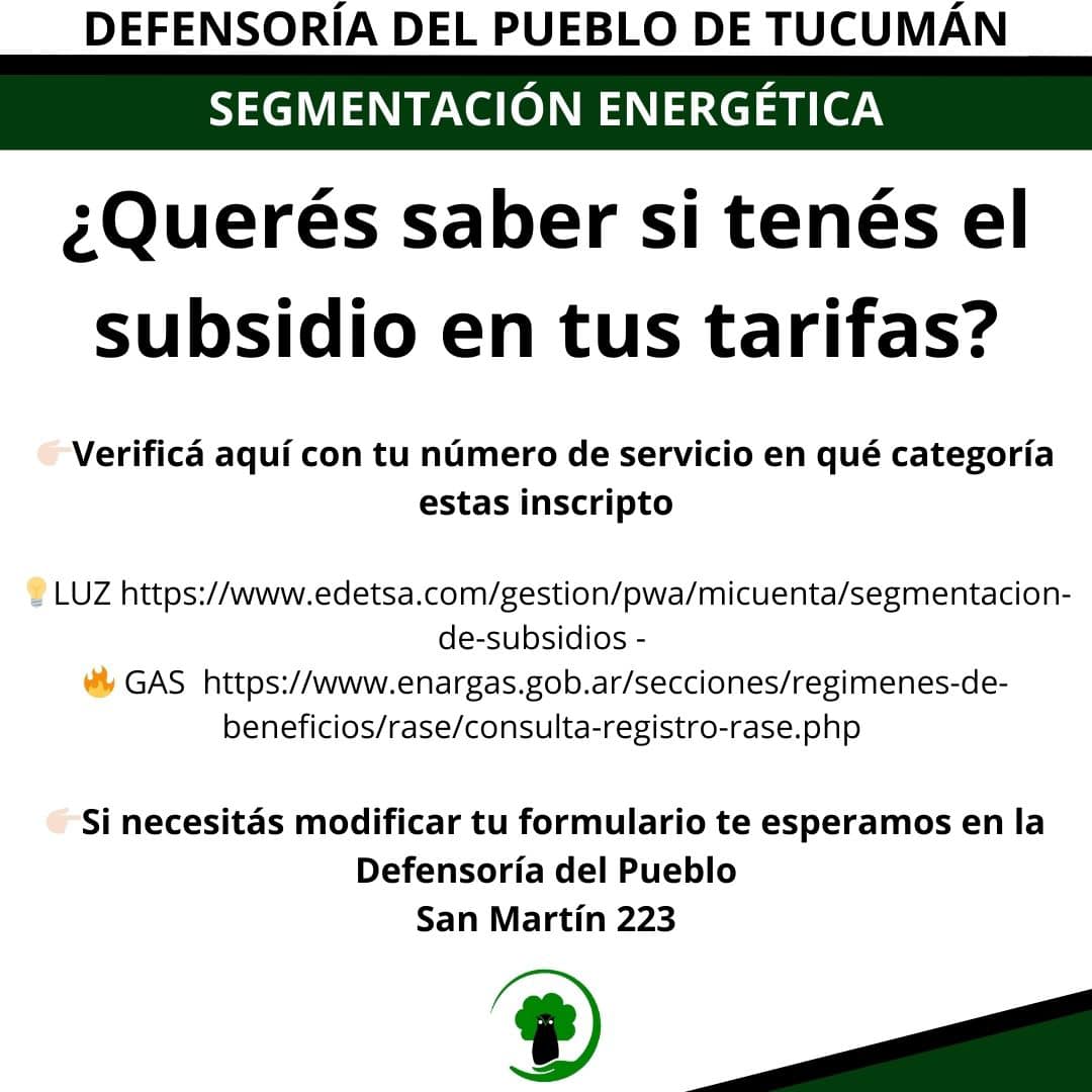 A su vez mencionó: "Por lo menos el 80% de la provincia de Tucumán gana menos de 900 mil pesos, 870 mil que la canasta básica, entonces si ganas menos de 870, tenés que estar en el segmento de menores ingresos y bueno, no te va a impactar el monto de 99 pesos para pagar lo que venís pagando los 49. Te vas a liberar, no de que te hagan una baja ni nada de eso, te va a liberar de que no te apliquen la quita del subsidio. O sea, en vez de 99 pesos para pagar 49".