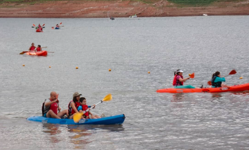 "Estamos ubicados sobre el dique, ahí está nuestra carpa donde estamos alquilando los kayaks, que es justo debajo del bar La Isla, que es un bar muy conocido, típico de lo que es El Cadillal. A orilla del dique es una carpa roja, grande, no te la vas a perder, te arrimás del dique y la vas a ver, porque es grande y está ahí en la playa.