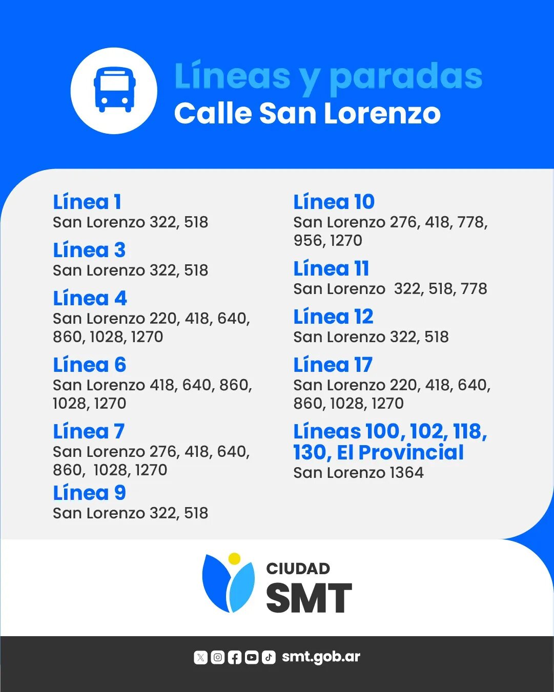 Las líneas de ómnibus que actualmente circulan por calle Crisóstomo Álvarez, desde este viernes lo harán por calle San Lorenzo, mientras que los colectivos que se movilizan por esta última lo harán por Las Piedras.