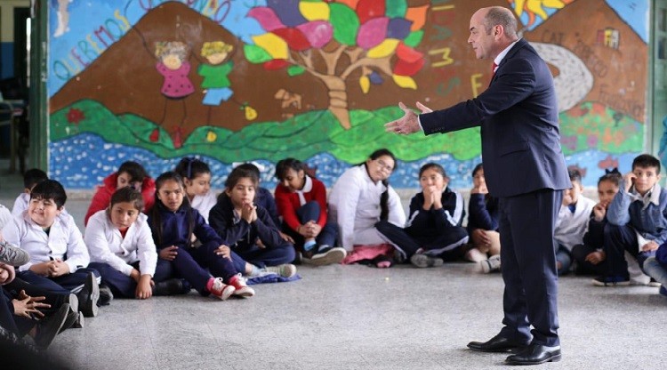 Juan Pablo Lichtmajer, ministro de Educación, con su equipo de trabajo, visitó la Escuela Delfín Jijena, del Barrio Lola Mora en la Capital, se reunió con la directora, docentes, estudiantes y el presidente de la Cooperativa de dicho establecimiento educativo