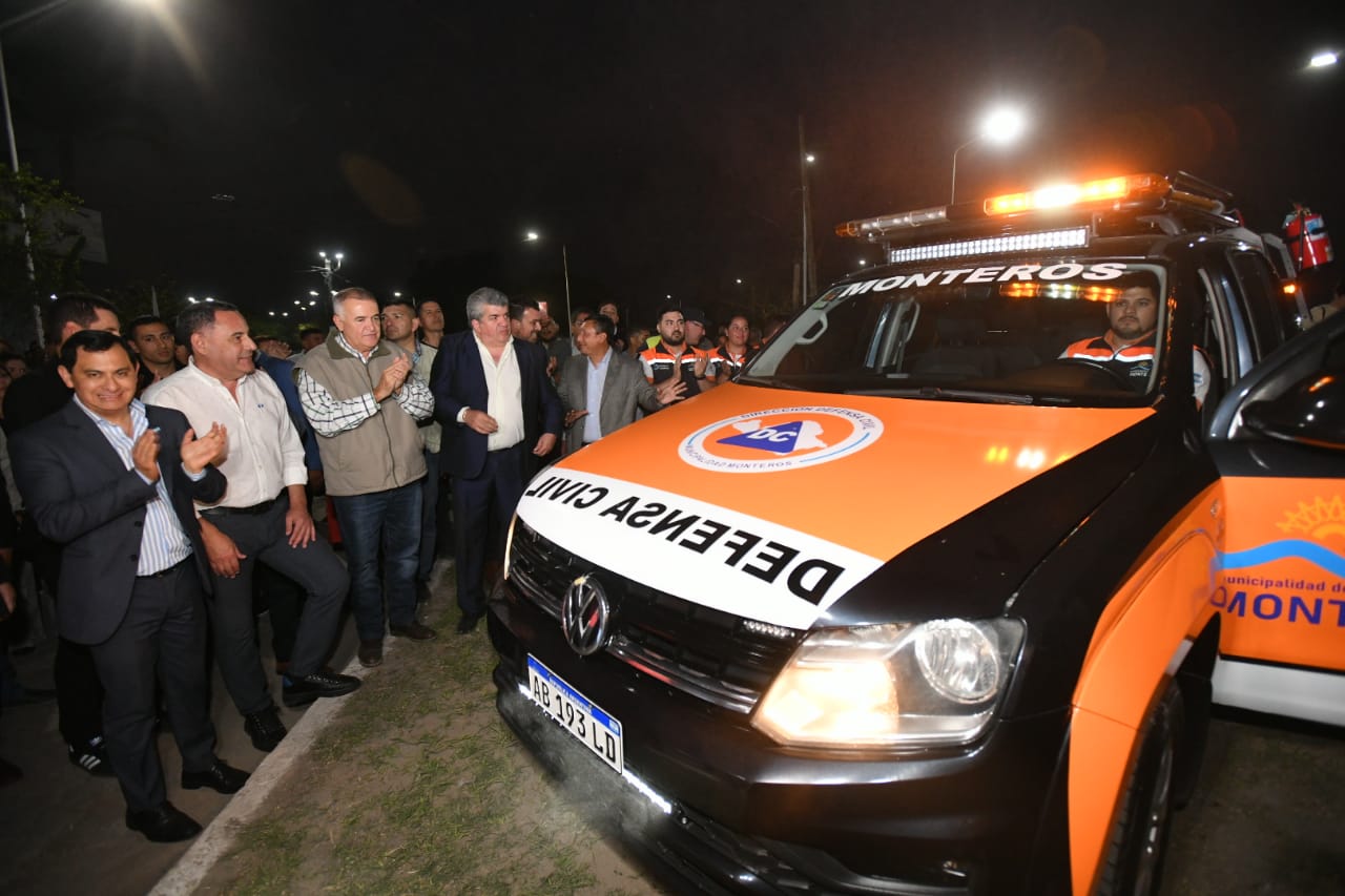 El gobernador visitó la ciudad de Monteros en donde dejó inauguradas obras en una plazoleta, y adoquinado e iluminación en un barrio. También se entregó un vehículo para Defensa Civil.