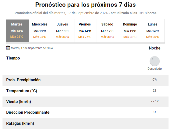 "Vamos a tener temperaturas, se lo da prácticamente toda la semana, hasta el 10 jueves, los máximos van a ir continuamente en ascenso, día por día subiendo 2 grados y llegando al jueves, que sería el día más caluroso de la semana, con unos 35 grados de máxima, así que el jueves seguramente todos de remera porque van a estar tanto las mínimas como las máximas, para estar altas", aseguró.