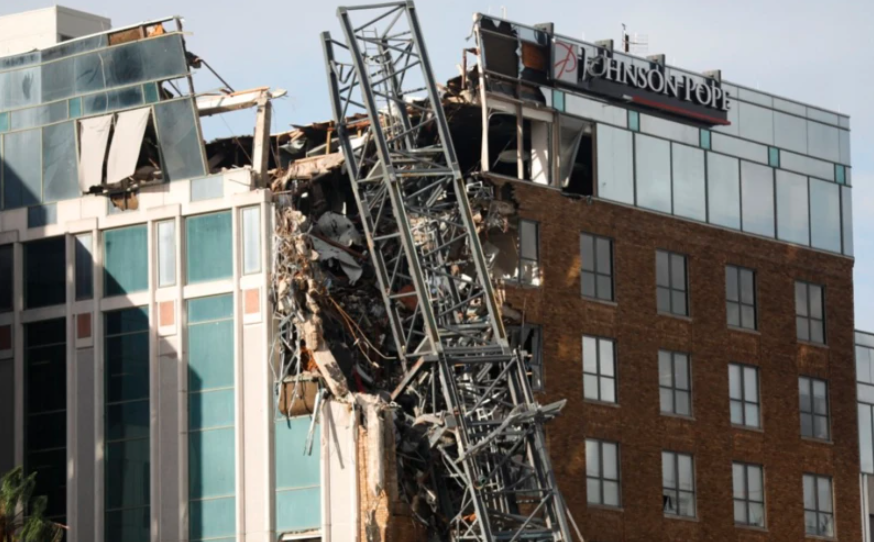 La grúa de Residences 400 Central, un edificio de 46 pisos en desarrollo por Red Apple Group, se desplomó sobre 490 First Avenue South, según funcionarios de la ciudad de St. Petersburg. El edificio de First Avenue es sede de las oficinas del diario local Tampa Bay Times.