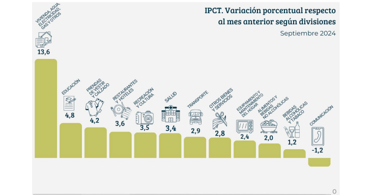 Las categorías que más aumentaron fueron “Vivienda, agua, electricidad, gas y otros combustibles” (13,6%) seguida por “Educación” (4,8%).