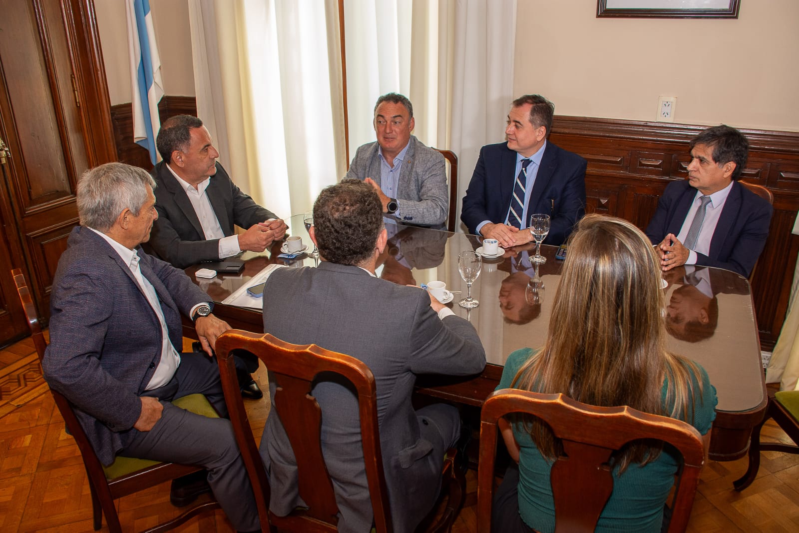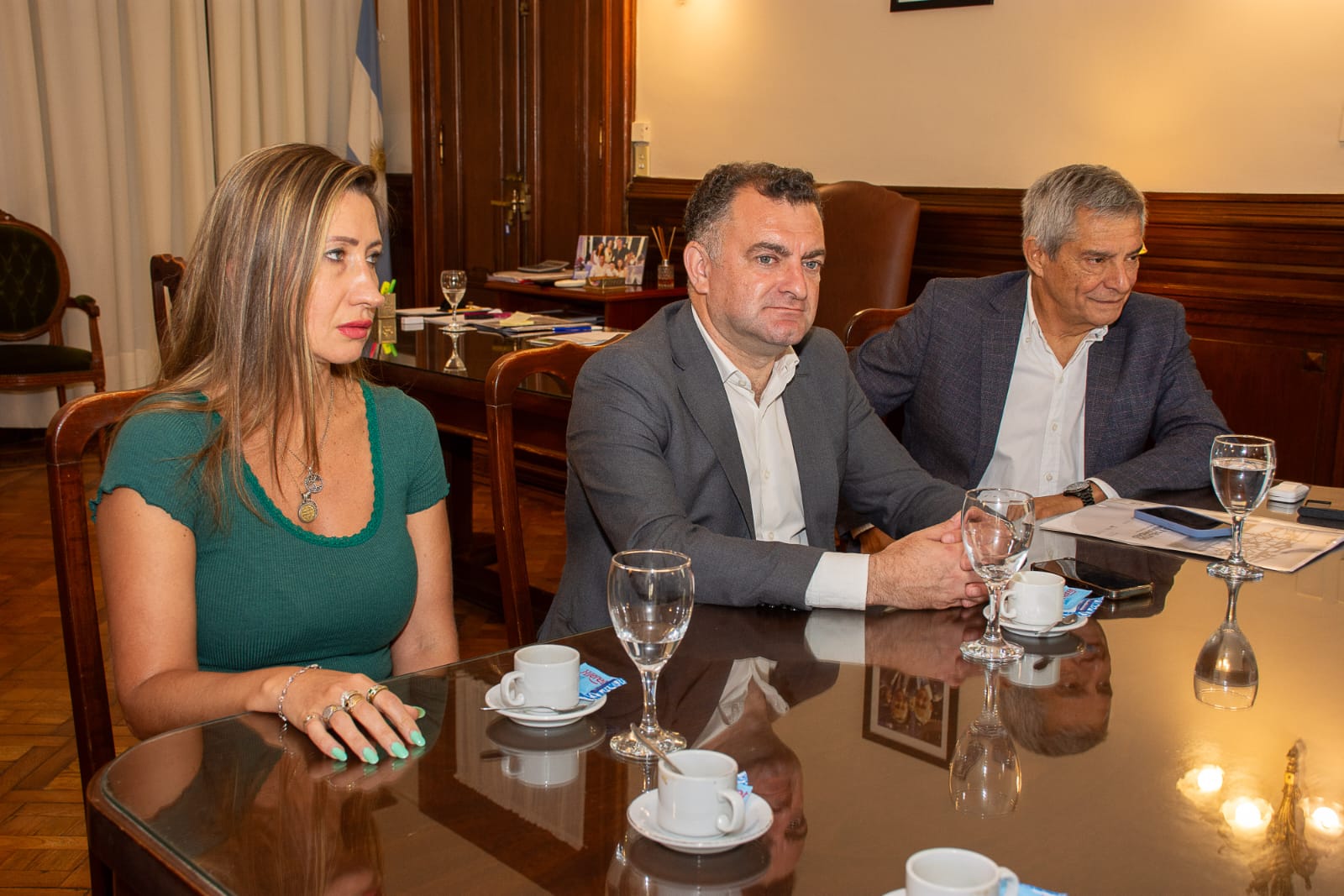 En una reunión celebrada en Casa de Gobierno, el ministro de Gobierno y Justicia de Tucumán, Regino Amado, recibió al coordinador académico de la Diplomatura de Posgrado sobre Genocidio y Delitos de Lesa Humanidad, Hugo Navas; al presidente del Colegio de Abogados de Tucumán, Rodolfo Gilli; y al presidente del Colegio de Abogados del Sur, Diego Vals. También participaron del encuentro el secretario de Gobierno y Relaciones Institucionales, Raúl Albarracín, y el secretario de Justicia y Derechos Humanos, Mario Racedo.
