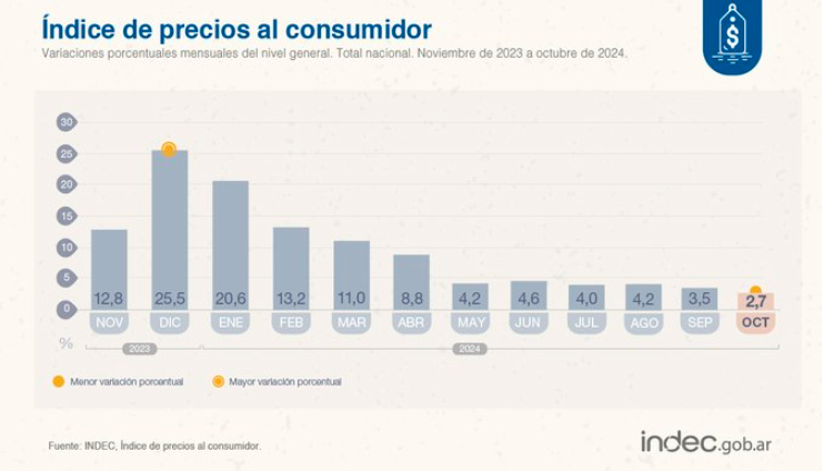 El Indec anunció que la inflación de octubre fue de 2,7 por ciento respecto a septiembre y lleva acumulado 107 por ciento en los primeros diez meses del año.