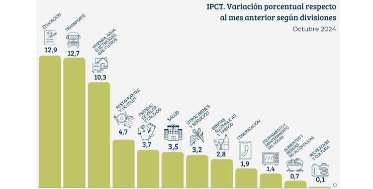 Las categorías que más aumentaron fueron “Educación” (12,9%) seguida por “Transporte” (12,7%).