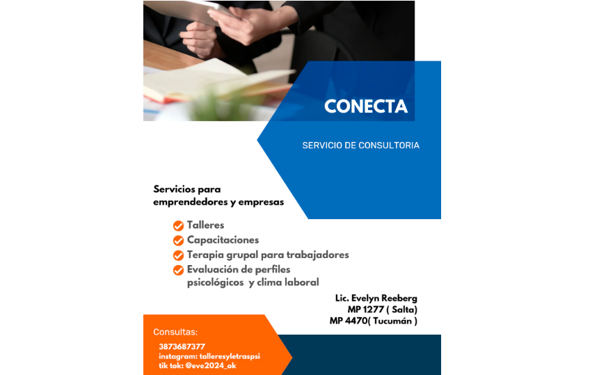 Para consultar con la licenciada Evelyn Reeberg. Wsp- 387-368-7377. En Ig- talleresyperfilespsi y en Tiktok- @eve2024_ok