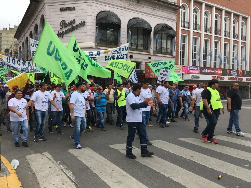 Empleados nucleados en la UOCRA están protestando en plaza Independencia, en el marco del paro general convocado por la CGT.