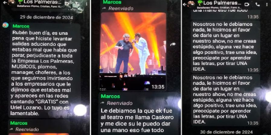 Los Palmeras se encuentran atravesando una fuerte crisis luego de que se desataran las internas a raíz de la internación de Cacho Deicas tras sufrir un ACV el pasado 10 de enero. En este sentido, se filtraron algunas chats que dan indicio de la confrontación entre el cantante y otro de los líderes del grupo Marcos Camino.