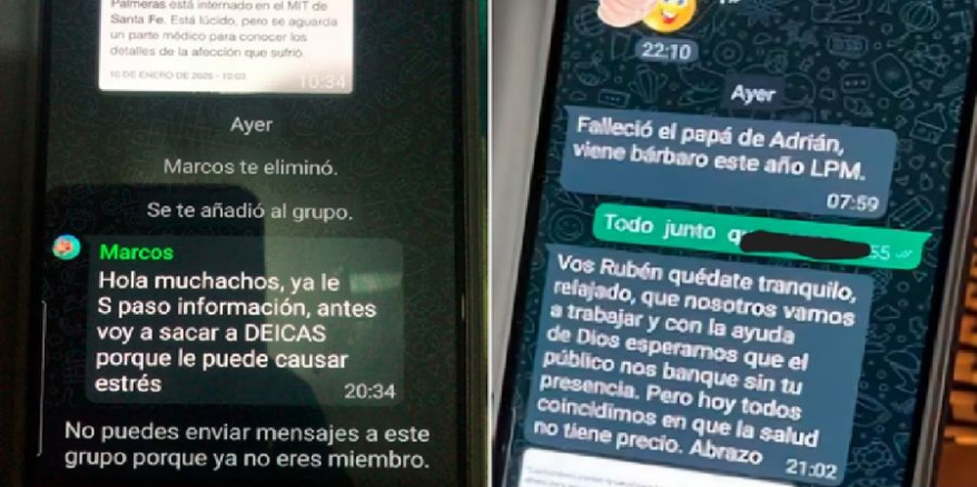 Además, Luciano criticó que el staff de Los Palmeras le pidiera que grabara un video cuando recién fue dado de alta para no perder algunos acuerdos: “Apenas estaba recuperándose y ya le pedían un mensaje para salvar los contratos. Esto deja mucho que desear”. Y mostró que, horas después, Marcos eliminó del grupo de Whatsapp al vocalista: "“Voy a sacar a Deicas porque le puede causar estrés”.