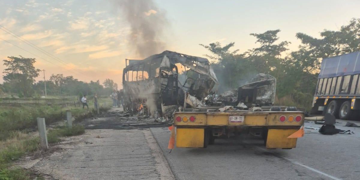 Una tragedia ocurrió este sábado en el sur de México cuando un colectivo impactó de lleno contra un camión de carga. El siniestro dejó al menos 40 muertos y ocho heridos del micro en el que viajaban al menos 40 pasajeros. Las estremecedoras imágenes muestran a los vehículos completamente carbonizados en la carretera.