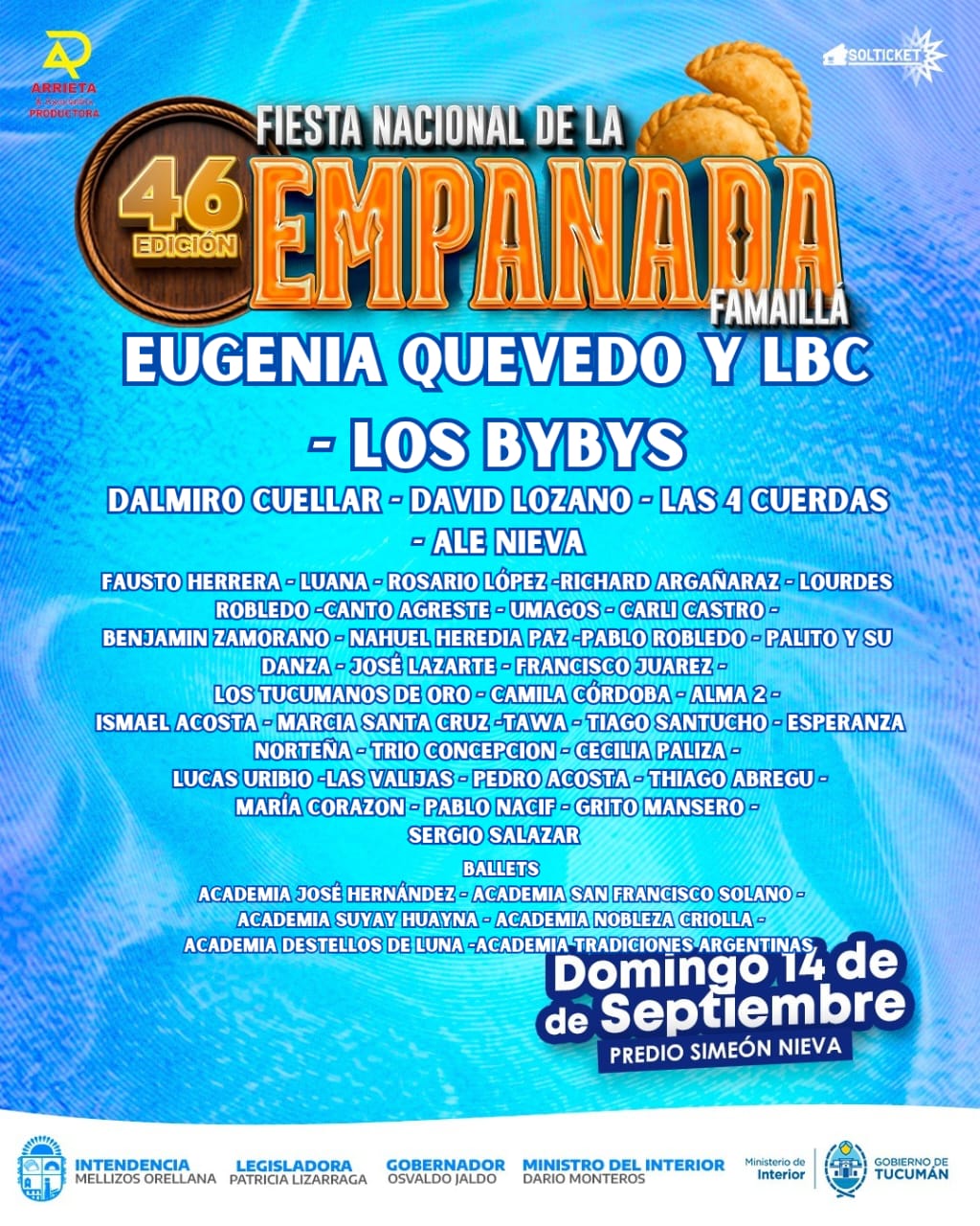 Y añadió: "El domingo tenemos espectáculo durante todo el día en un escenario cerca de donde va a ser el campeonato de la empanada y el domingo a la noche volvemos a las 20 horas. Arrancan las tres jornadas, viernes, sábado y domingo en un escenario mayor donde vamos a tener la posibilidad también del domingo disfrutar de Eugenia Quevedo, La Banda de Carlitos y los Internacionales Bybys de México".