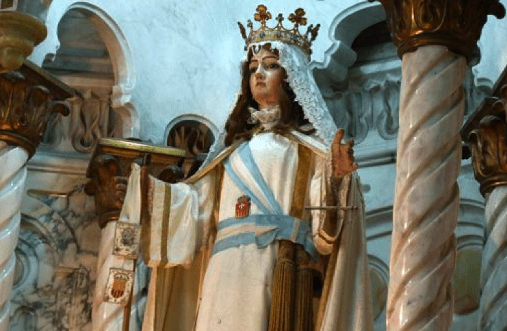 El 27 de octubre de 1812 se celebró una misa de acción de gracias; en la procesión que llevaba la estatua de esta Virgen, Belgrano depositó su bastón de mando entre los cordones del ropaje de la imagen, proclamándola en agradecimiento como Generala del Ejército Argentino.