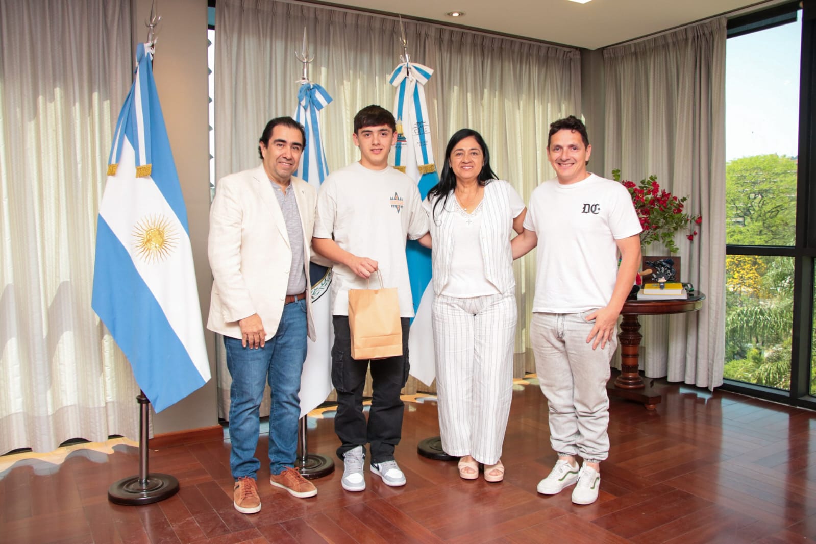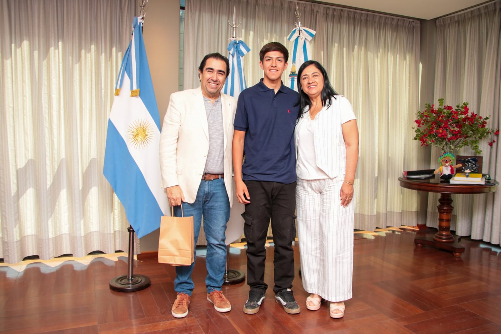 El presidente subrogante de la Honorable Legislatura de Tucumán, Sergio Mansilla, recibió en la sede legislativa a los deportistas tucumanos María Emilia Filgueira, Juan Nardolillo y Santiago Rat, representantes del mountain bike, y a Santiago Frías, destacado piloto de enduro.