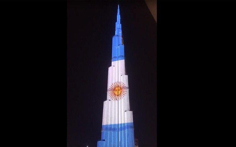 Por esta razón este martes 9 de julio, el rascacielos más alto y famoso del mundo, el Burj Khalifa de Dubai, dibujó los colores de la bandera Argentina, con luces que cubrieron la superficie total del edificio, que mide 828 metros.