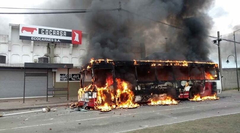 Trabajadores de dos sectores gremiales se enfrentaron esta mañana en el frigorífico Ecocarnes. Incendiaron colectivos y hay 2 personas heridas de bala