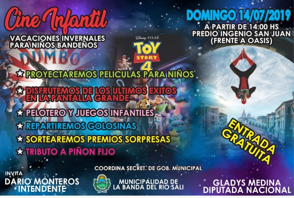 Este domingo 14 de julio a partir de las 14 hs en el predio del Ingenio San Juan (frente al Oasis). Cine, juegos y sorteos, para disfrutar a pleno del receso invernal
