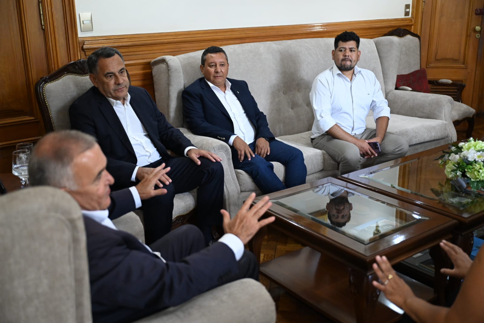 El gobernador Osvaldo Jaldo recibió en su despacho de Casa de Gobierno a la intendenta de Santa María, Catamarca, Erica Inga, que estuvo acompañada de los ministros de la Provincia, Darío Monteros, de Interior, y Regino Amado, de Gobierno y Justicia, en un encuentro orientado a fortalecer la reciprocidad y el trabajo conjunto entre ambas provincias, con eje en infraestructura, turismo y servicios compartidos.