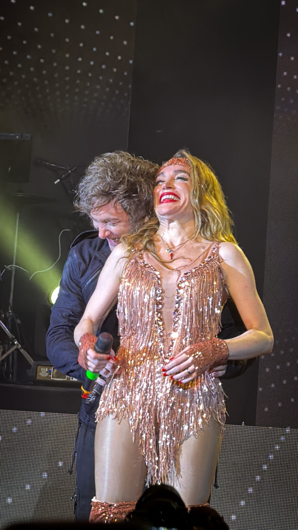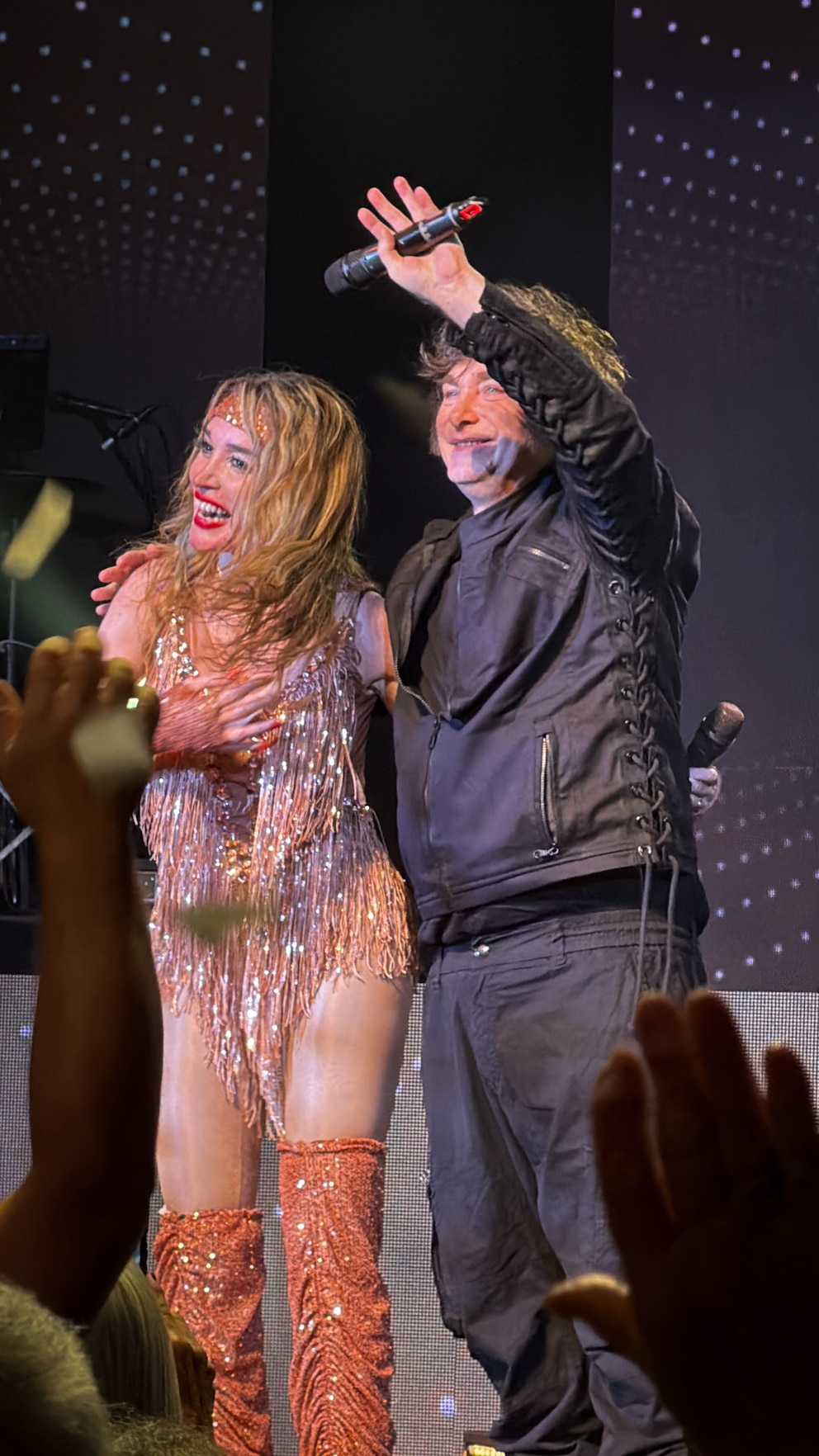 La aparición de Milei sobre el escenario despertó el entusiasmo de los presentes, quienes celebraron su participación y la interacción con la artista. No faltaron los gritos pidiendo para que vuelvan y hasta hubo un momento en el que se abrazaron y él le tomó la cintura.