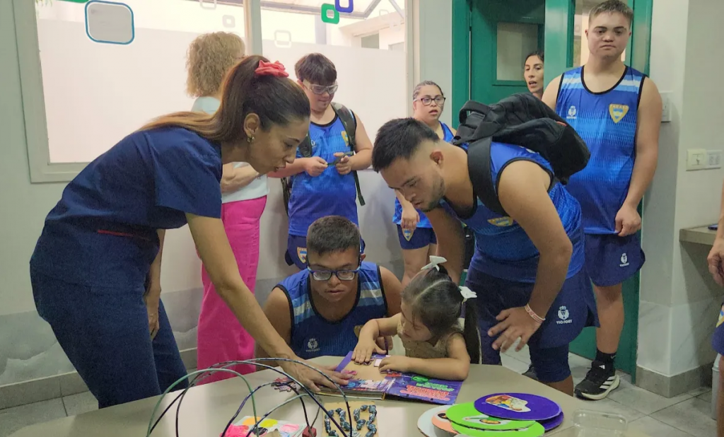 Durante la visita, los atletas recorrieron las instalaciones y compartieron una enriquecedora charla con padres y familias que acompañaron este importante encuentro. Fue un espacio de intercambio, aprendizaje y emoción, donde se destacó el valor del deporte como herramienta de integración y superación.