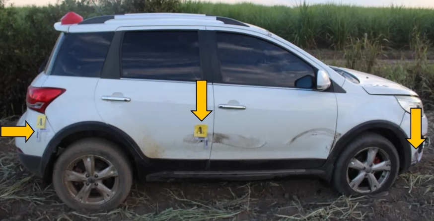 Allí se puso delante de él, de manera agresiva, la camioneta. En su caja iba un masculino que apuntaba a la víctima con un arma de fuego tipo pistola. Al mismo tiempo, se puso en la parte de atrás el auto. Ante esto, el hombre aceleró y logró pasarlos, momento en que los delincuentes realizaron dos disparos. Seguido a ello hicieron nuevamente varios disparos más. Cuando la víctima intentó nuevamente evadirlos, su vehículo no reaccionó y debió reducir la marcha.