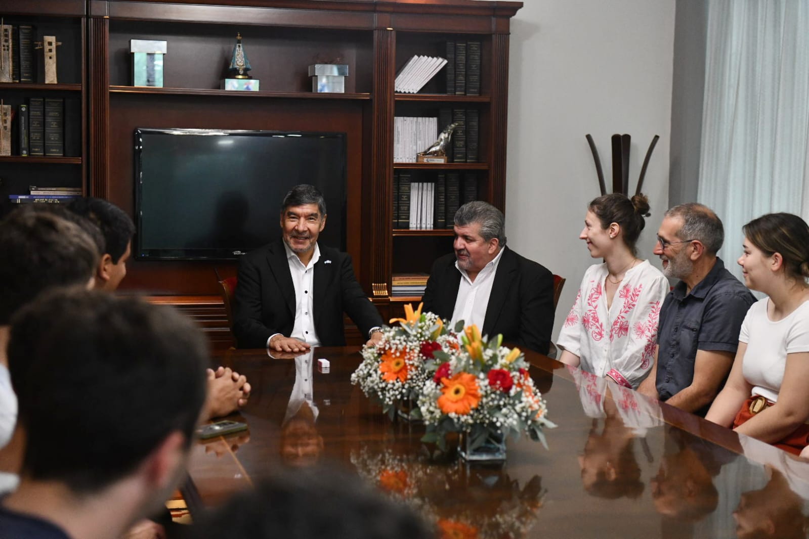 El vicegobernador Miguel Acevedo, recibió en su despacho a estudiantes y docentes del Liceo Edgar Pisani, provenientes de Saumur Val de Loire, Francia, quienes se encuentran en la provincia participando de un programa de intercambio educativo vinculado a la formación en enología y viticultura.