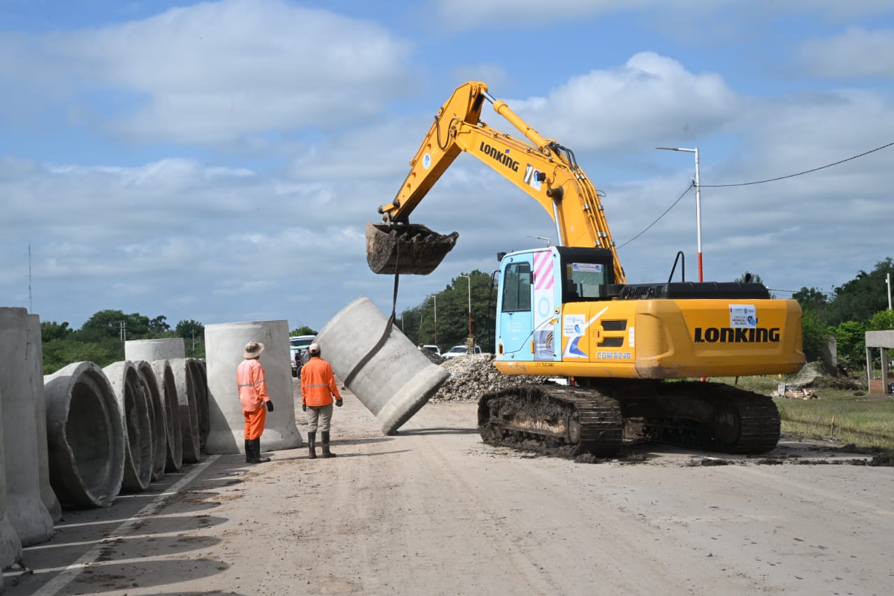 Las tareas se concentran en los sectores donde se realizaron rupturas de la ruta con el objetivo de permitir el escurrimiento del agua acumulada en el casco urbano.