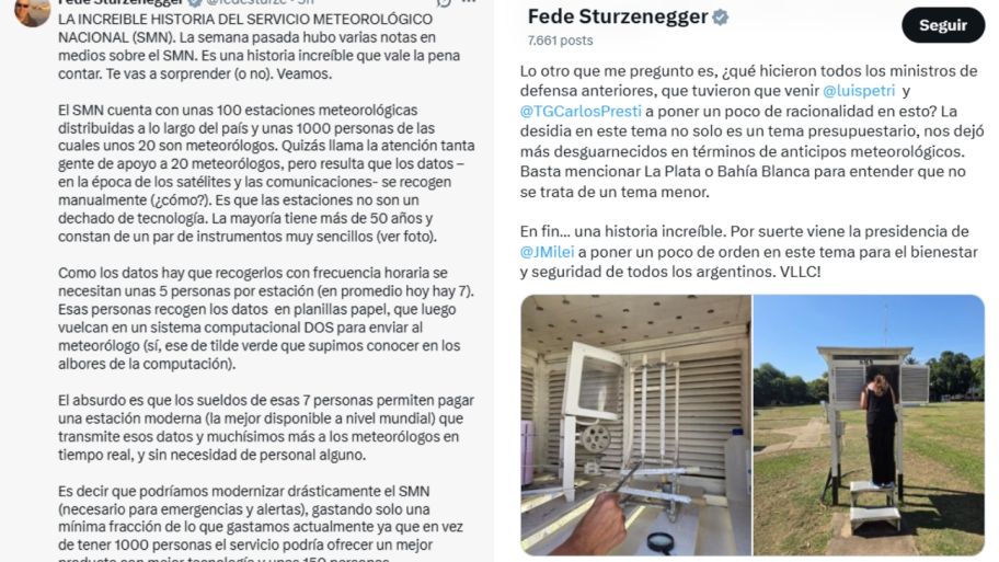 El ministro de Desregulación y Transformación del Estado, Federico Sturzenegger, justificó los despidos de 140 trabajadores del Servicio Meteorológico Nacional (SMN), concretados recientemente por el gobierno de Javier Milei argumentando que responden a un proceso de “optimización de recursos” y modernización del organismo. A través de un extenso descargo en sus redes sociales, el funcionario indicó que la estructura del organismo se encuentra obsoleta y que el mantenimiento de puestos de trabajo manuales representa un gasto innecesario para los contribuyentes.