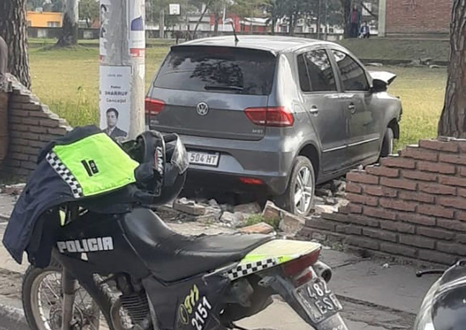 El auto, VW Fox se estrelló contra la tapia y pasó hacía adentro del establecimiento educativo por causas que se tratan de establecer. El conductor de 34 años fue identificado como Horacio Miguel Godoy.