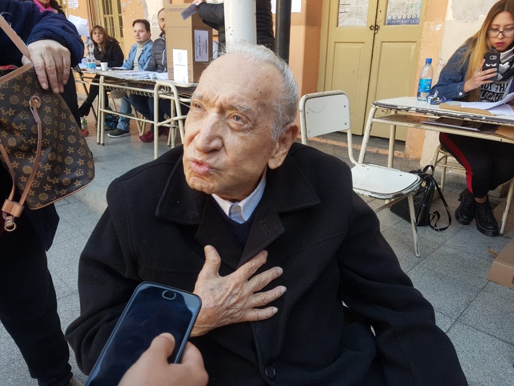Es el caso de Emilio Buabse de 92 años, quien charló con Oscar Avellaneda durante la mañana del domingo en Rivadavia; contó que hoy se levantó temprano de la cama para ir hasta el lugar donde le tocaba sufragar; resaltó que los argentinos deben valorar la democracia e instó a los ciudadanos argentinos a cumplir con el deber cívico.
