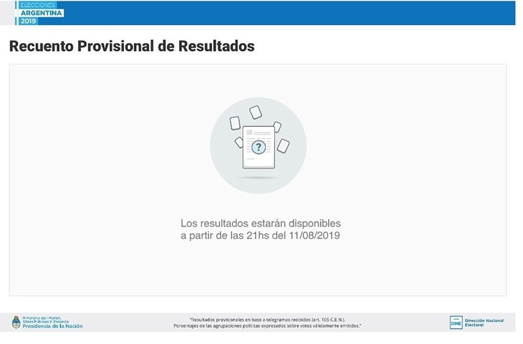 Según estimaciones oficiales, los primeros datos entonces estarán disponibles para darse a conocer alrededor de las 21, con actualizaciones periódicas cada 5 minutos. Recién para la medianoche habrá una tendencia definitiva.